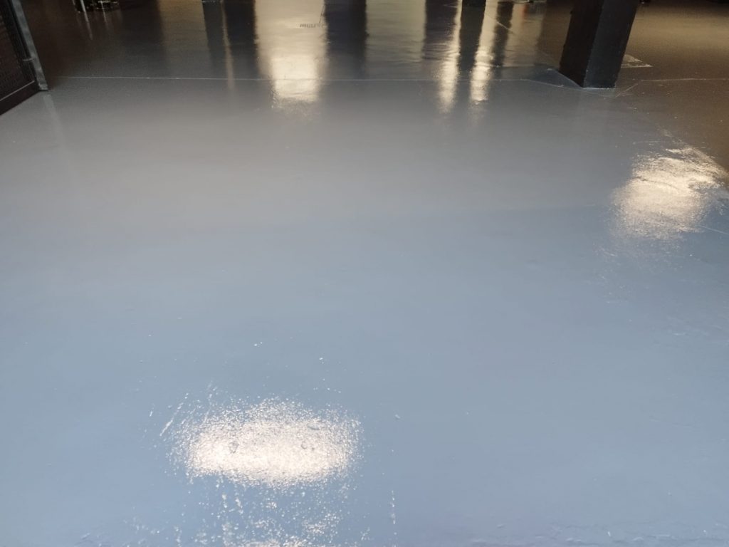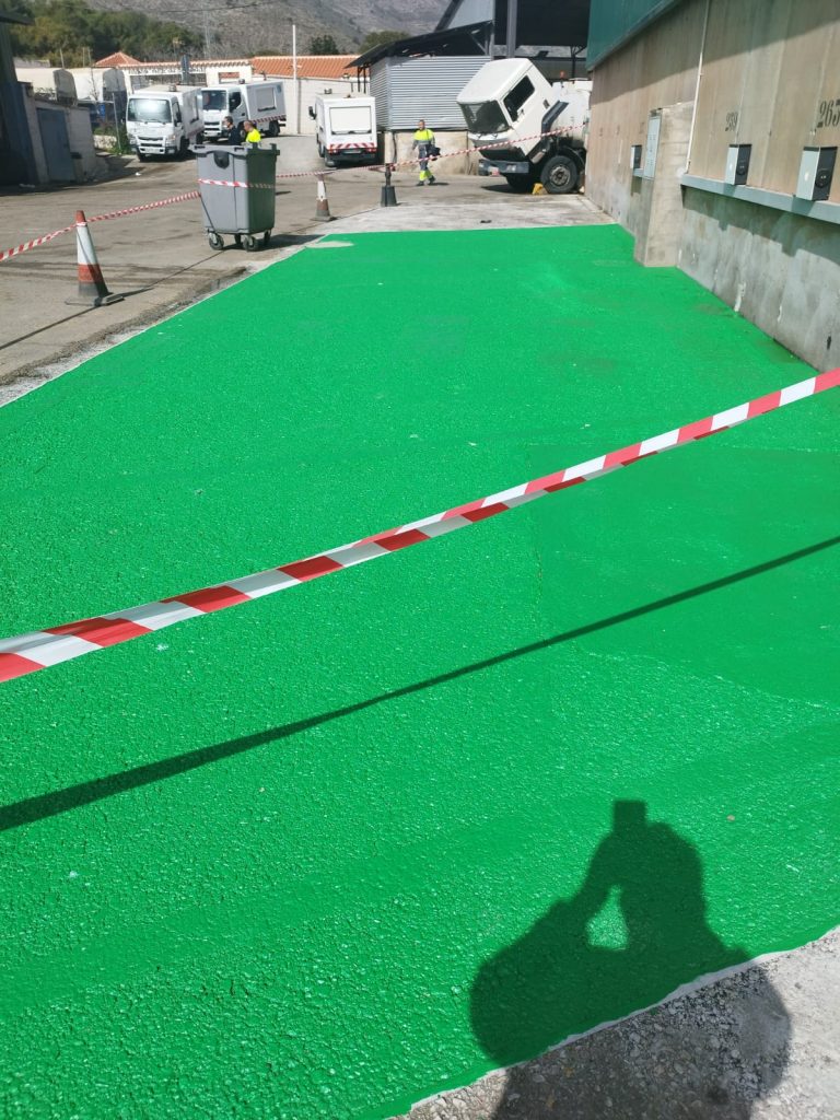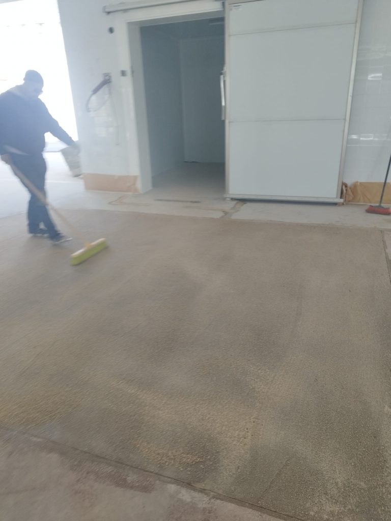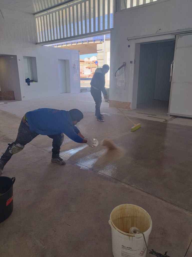 Pavimento de Epoxi con Cuarzo y doble capa de Epoxi autonivelante en nave industrial en Motril, Granada.