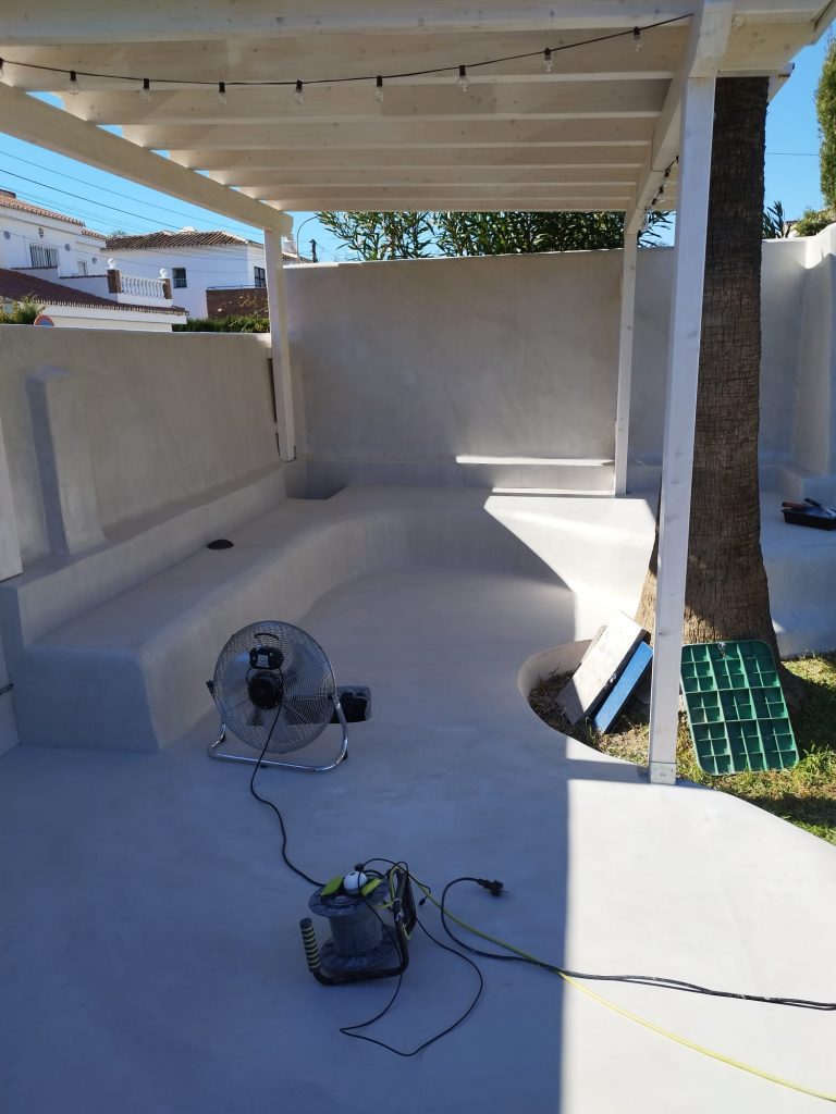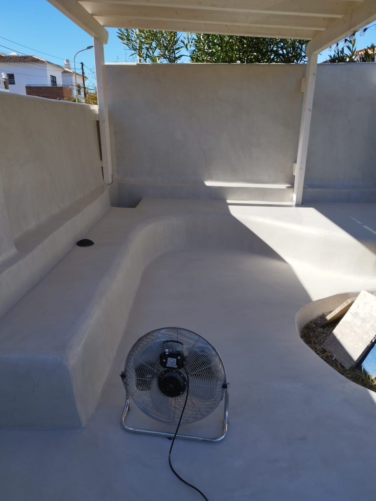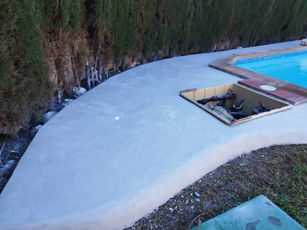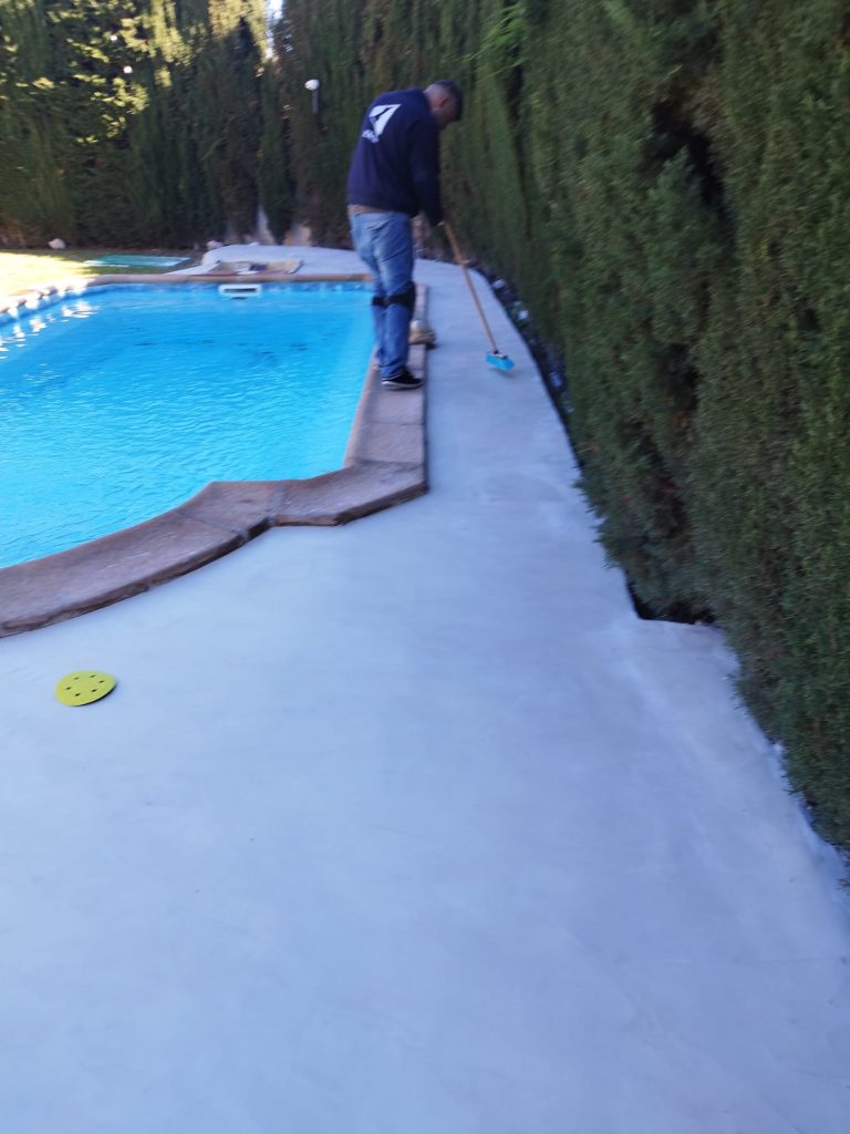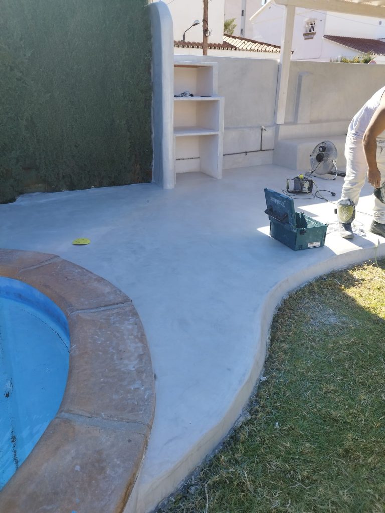 Microcemento en restauración y decoración de suelos alrededor de piscina.